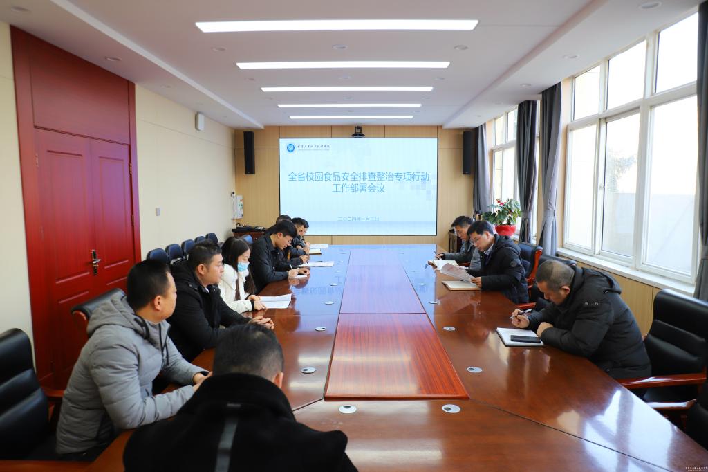 为认真贯彻落实好省食药安委办、省教育厅、省公安厅、省卫生健康委、省市场监管局关于校园食品安全排查整治专项行动相关工作要求,1月3日上午,学校在行政楼二楼会议室召开“食品安全排查整治专项行动工作”安排部署会。副院长曹惠清出席会议,后勤管理处负责人、学校食堂各承包公司负责人参加。