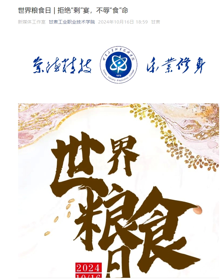 为积极落实甘肃省印发的《关于开展2024年世界粮食日和全省粮食安全宣传周活动的通知》要求,近日,后勤管理处开展了以“珍惜粮食,从我做起,共筑节约型校园”为主题的宣传教育活动,旨在弘扬中华民族勤俭节约的传统美德,培养全校师生珍惜粮食、节约粮食的好习惯。